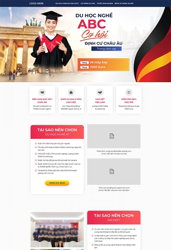 Landing page dịch vụ du học Online chuyên nghiệp