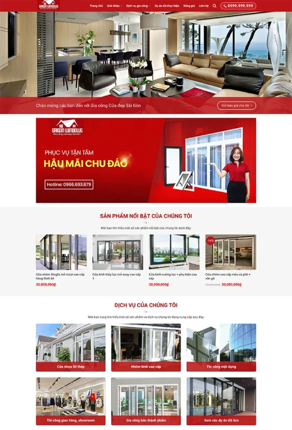 Mẫu website công ty nhôm kính chuyên nghiệp