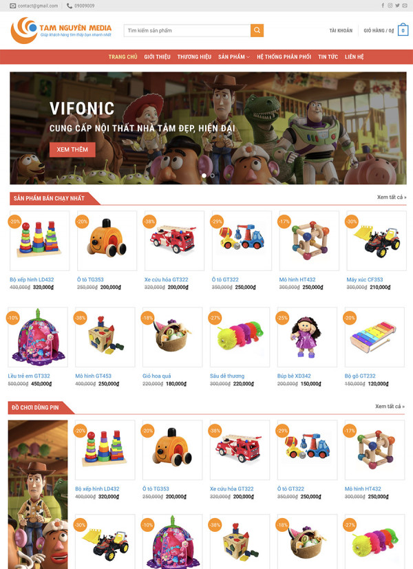 Đồ chơi trẻ em ngày càng phong phú, tâm lý của các ông bố bà mẹ luôn muốn con sở hữu những món đồ chơi đẹp, nguồn gốc rõ ràng, không độc hại. Do vậy nếu bạn đang sở hữu cửa hàng hoặc chuỗi cửa hàng bán đồ chơi, muốn tăng doanh số bán hàng, giới thiệu quảng bá thương hiệu đến nhiều người, hãy thiết kế website bán đồ chơi trẻ em Online chuyên nghiệp đẹp mắt ngay hôm nay.